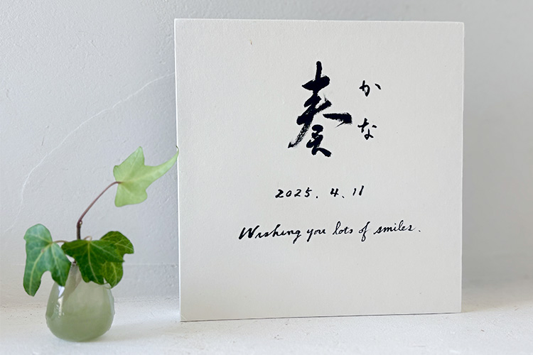 この世に誕生してきたことへのお祝と願いを込めて、和紙に、私自身が丁寧に磨った墨で心を込めて揮毫し、美しいパネルにいたします。